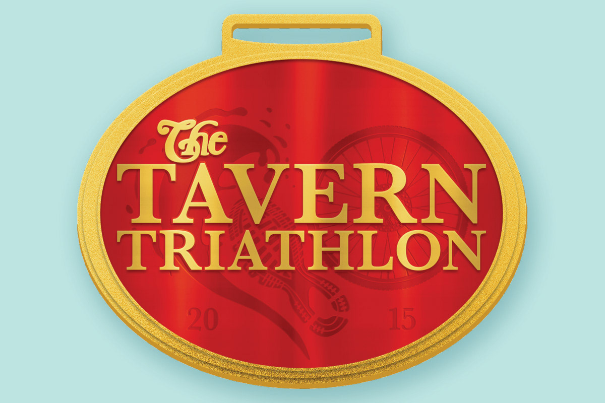 The Tavern Triathlon was created around the location of a favorite Richmond restaurant. Their logo on their website shows “I (Heart) the Tavern.” For the logo, I used that idea and combined the shoe print of a runner, the wheel of a bike, and a splash of water into a heart shape behind the typography. The poster and bib feature the brick wall of The Tavern and the red of the heart in the logo.